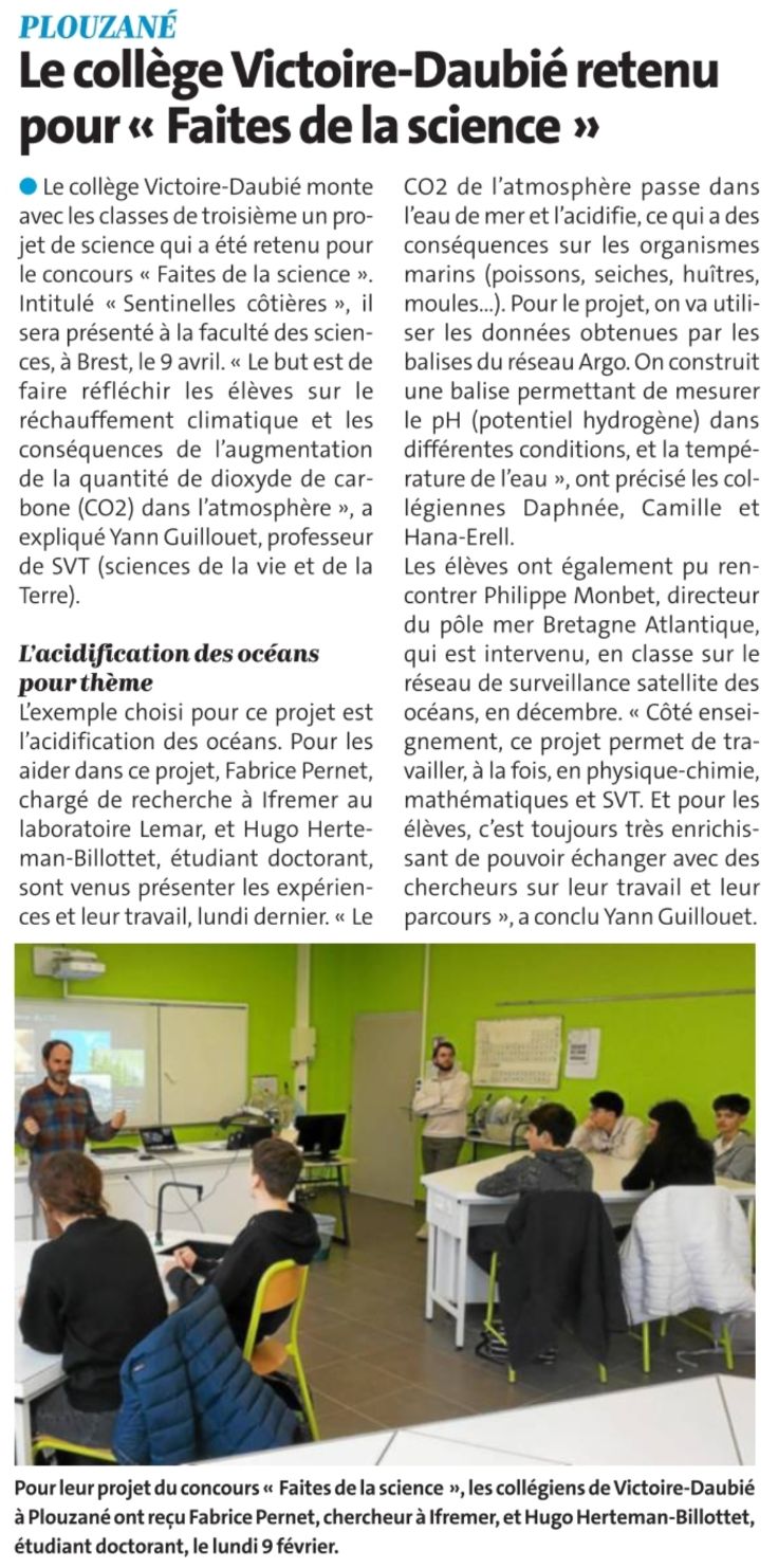 Article paru dans le télégramme de Brest le 14 février 2026.