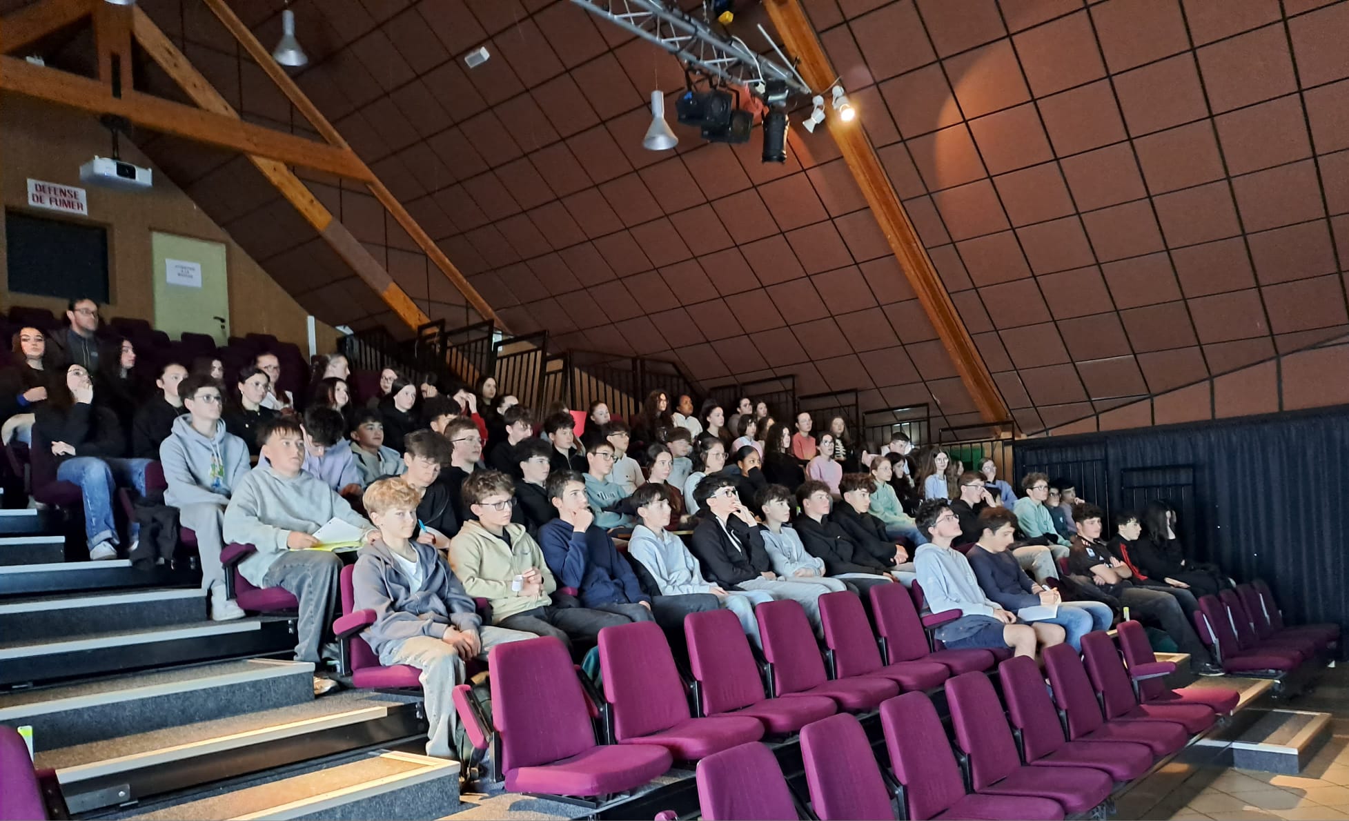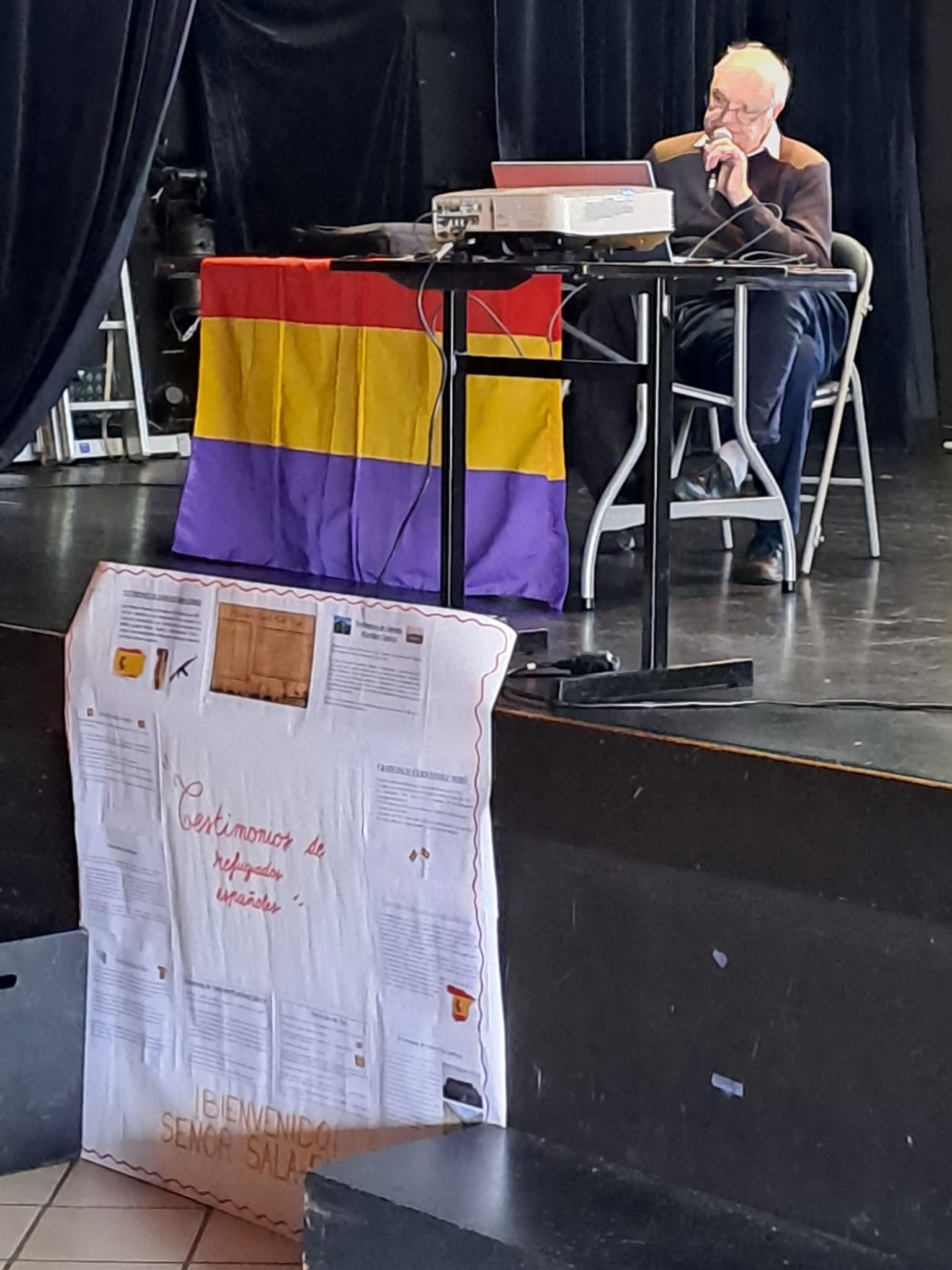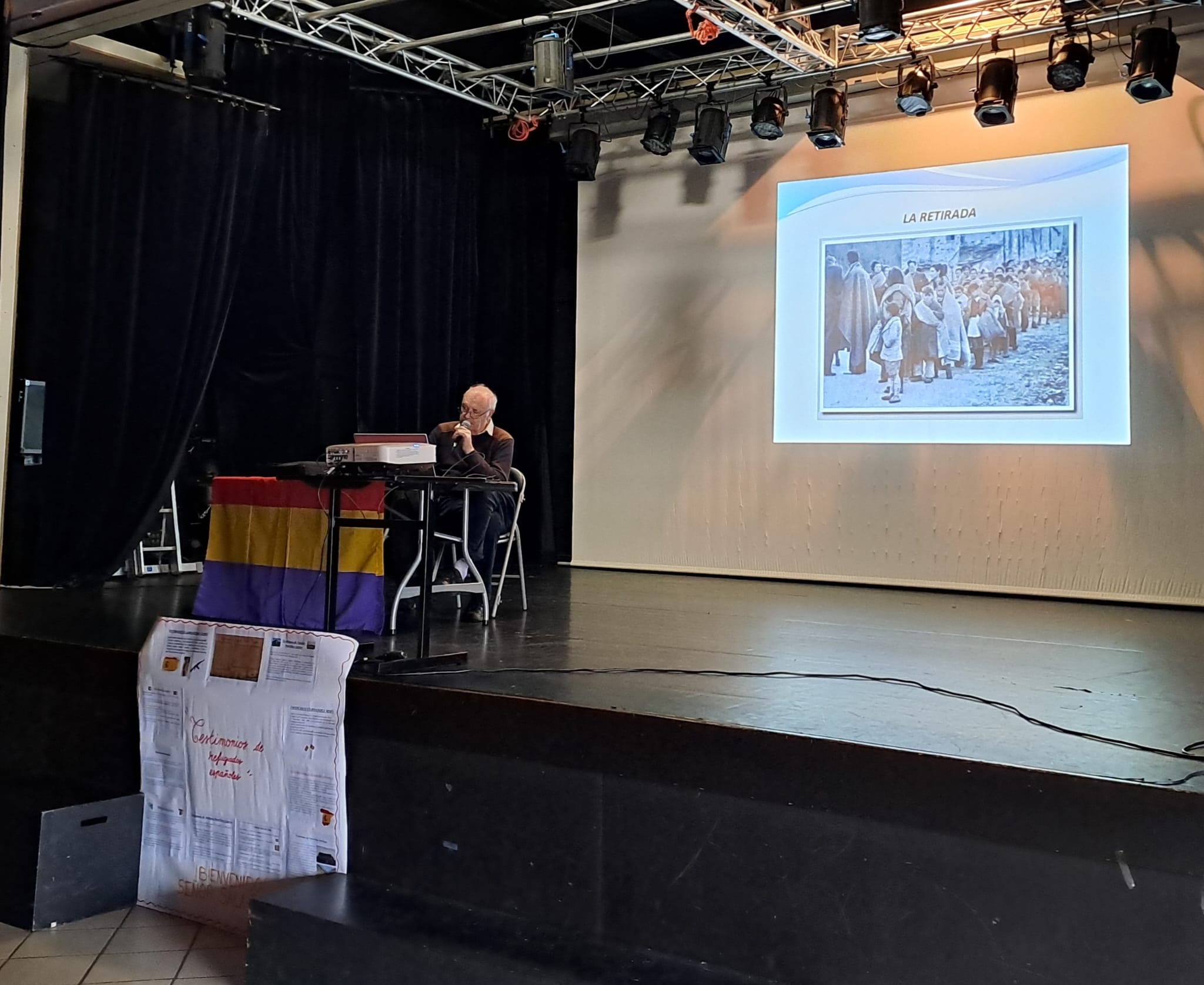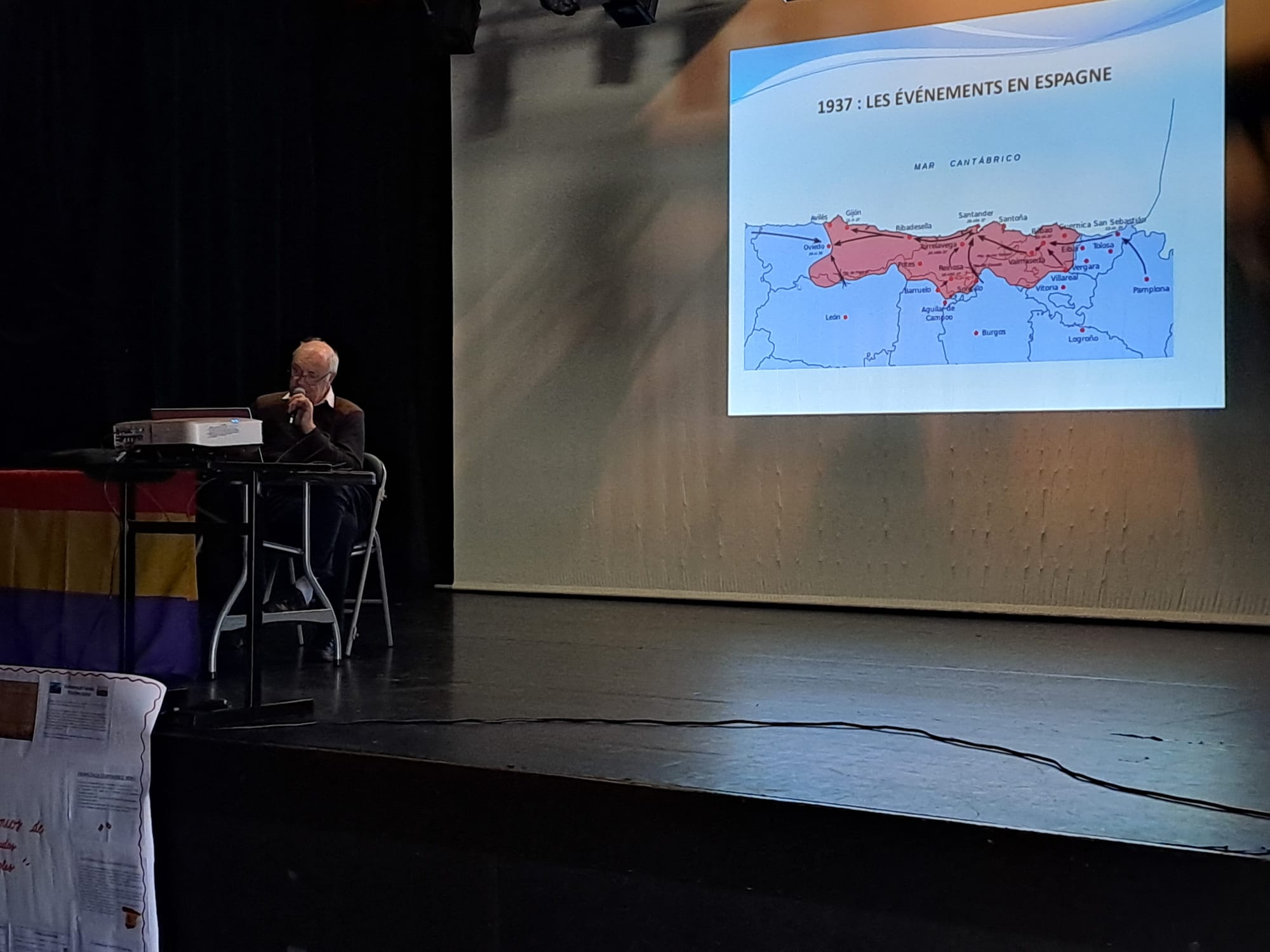 Ce vendredi 13 mars, à 10h, les 3 classes de 3ème du collège sont allées assister à une conférence de Jean SALA-PALA sur l’exil des Républicains espagnols dans le Finistère à partir de 1937, puis en 1939, année de la fin de la guerre civile espagnole et de la victoire du Général Franco.