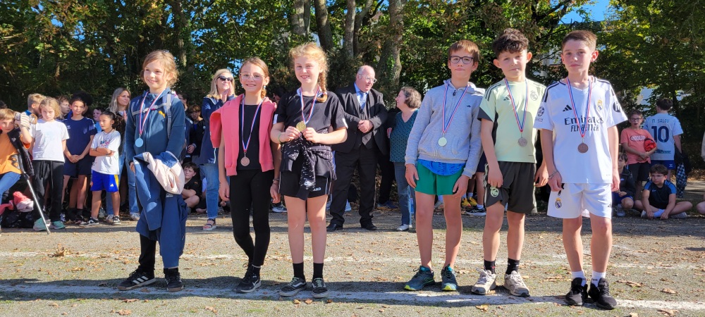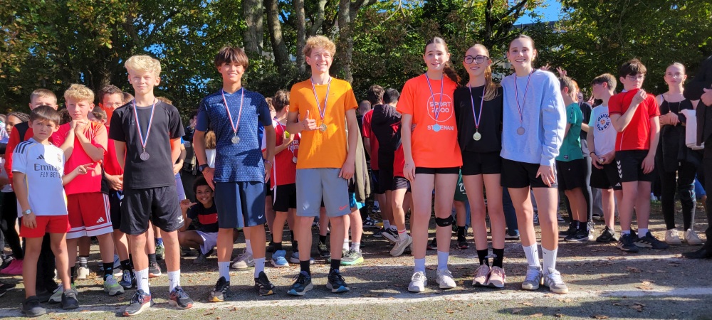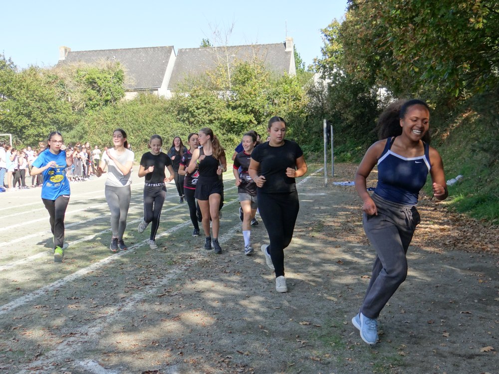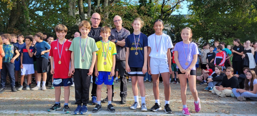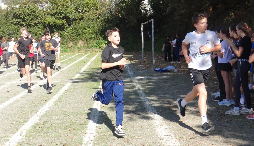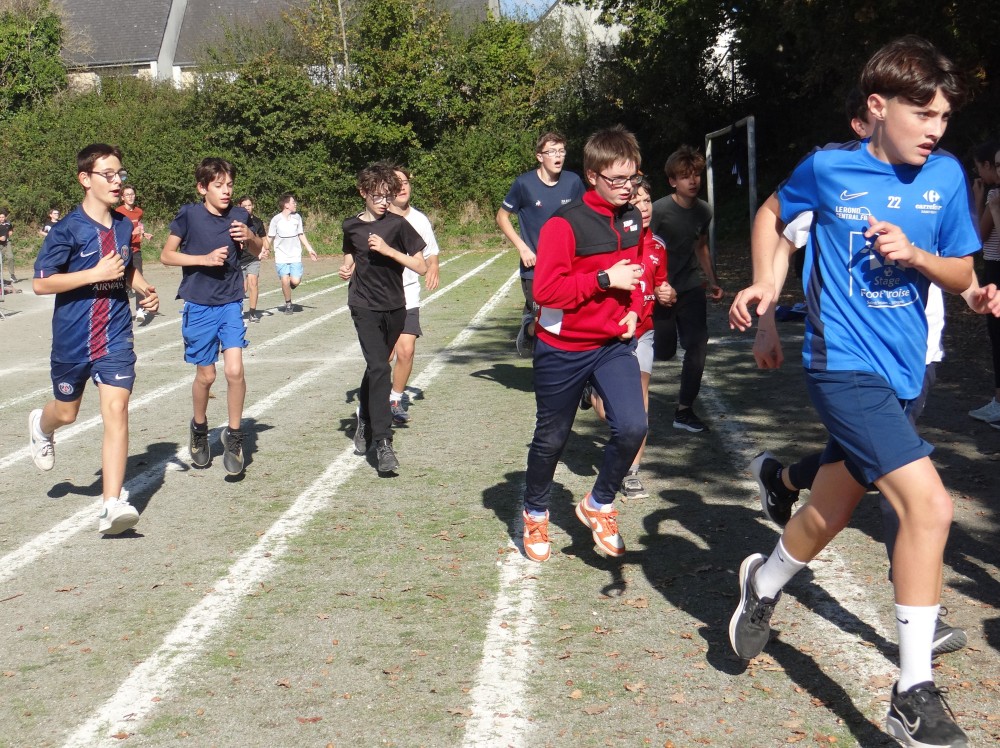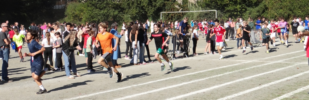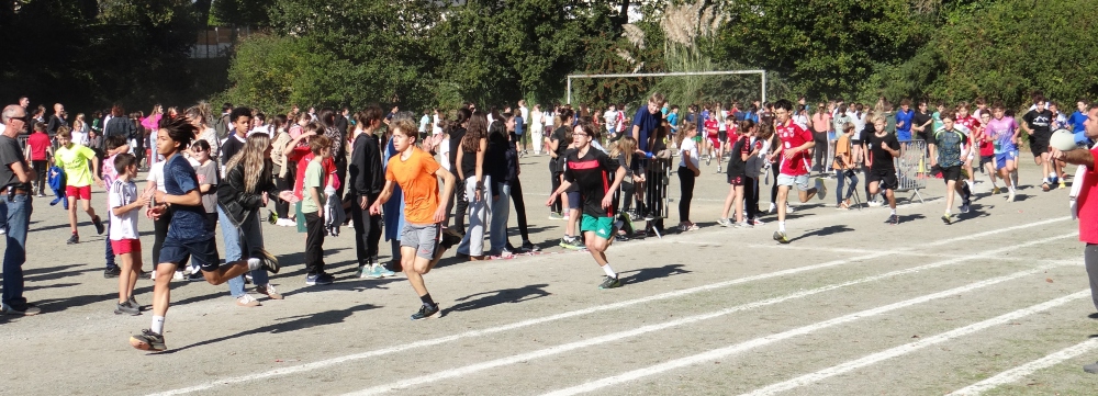 L’après-midi, place au sport ! Les courses se sont succédé dans la bonne humeur, grâce à l’animation assurée par M Miossec qui endossait une autre casquette : CM2, 6e, 5e, 4e et 3e, filles et garçons. Chacun a donné le meilleur de soi-même, encouragé par les professeurs, les AESH, les agents et de nombreux parents venus soutenir leurs enfants.