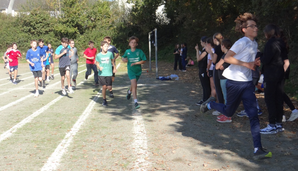 Ce jeudi sous un beau soleil d’automne, s’est déroulé le cross annuel du collège, un moment attendu par tous les élèves et enseignants. Cette année, l’événement avait une saveur particulière : les élèves de CM1 et CM2 des écoles de Plougonvelin et Locmaria étaient invités à participer à une classe résidence du collège, avant de courir avec les collégiens l’après-midi.