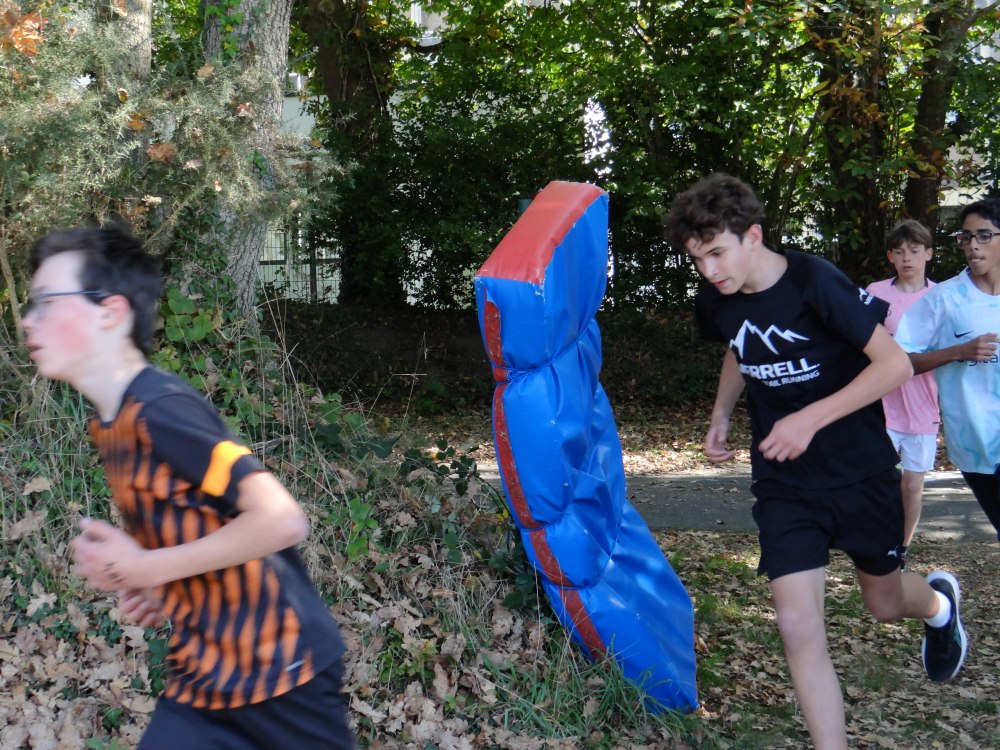 Pendant ce temps, l’équipe d’EPS — Mme Simon, M. Christ et M. Miossec — préparait le cross : montage des installations, balisage et sécurisation du parcours, avec le précieux concours de M. Gélébart, agent d’entretien.